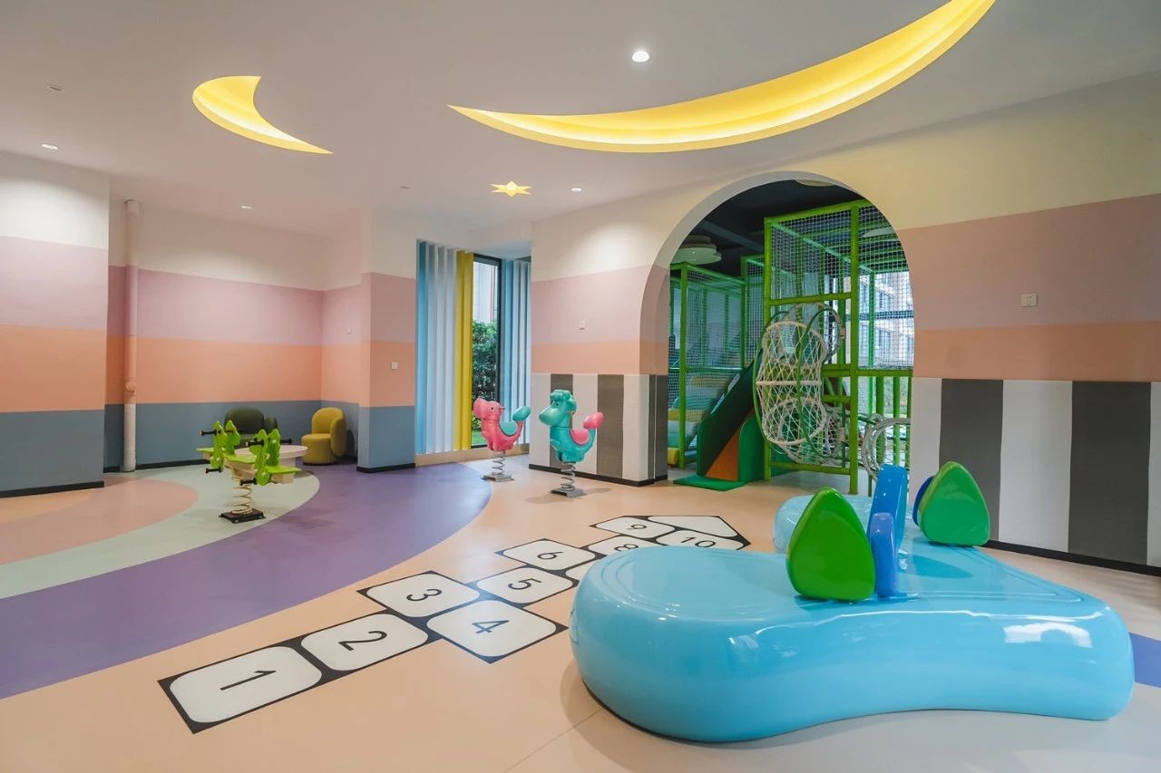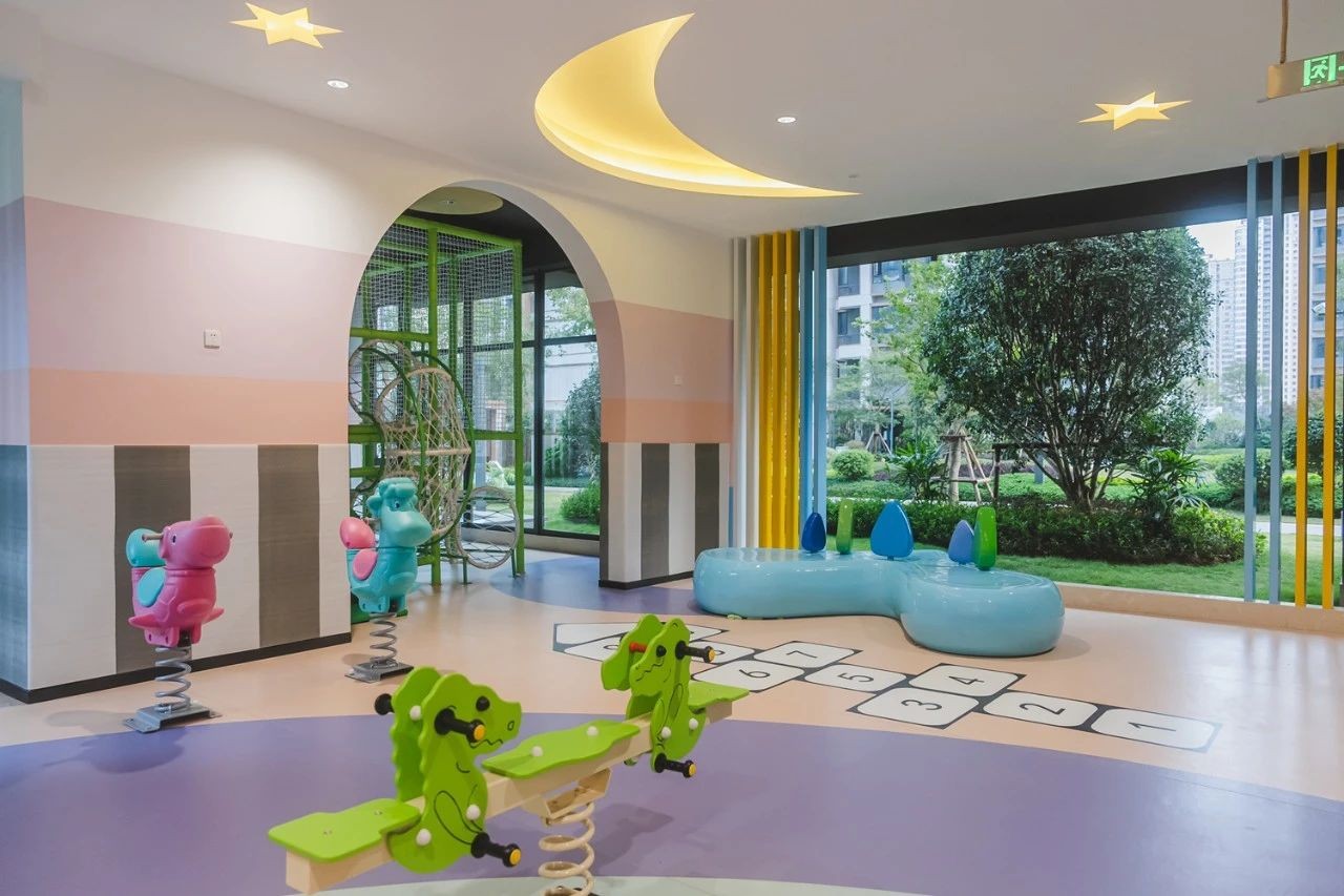 跷跷板、摇摇木马、滑梯、儿童攀爬区……为社区内的孩童打造一个随时可以畅玩的小天地,无论春夏秋冬、刮风下雨,孩童都可以在这片空间肆意嬉闹玩耍。